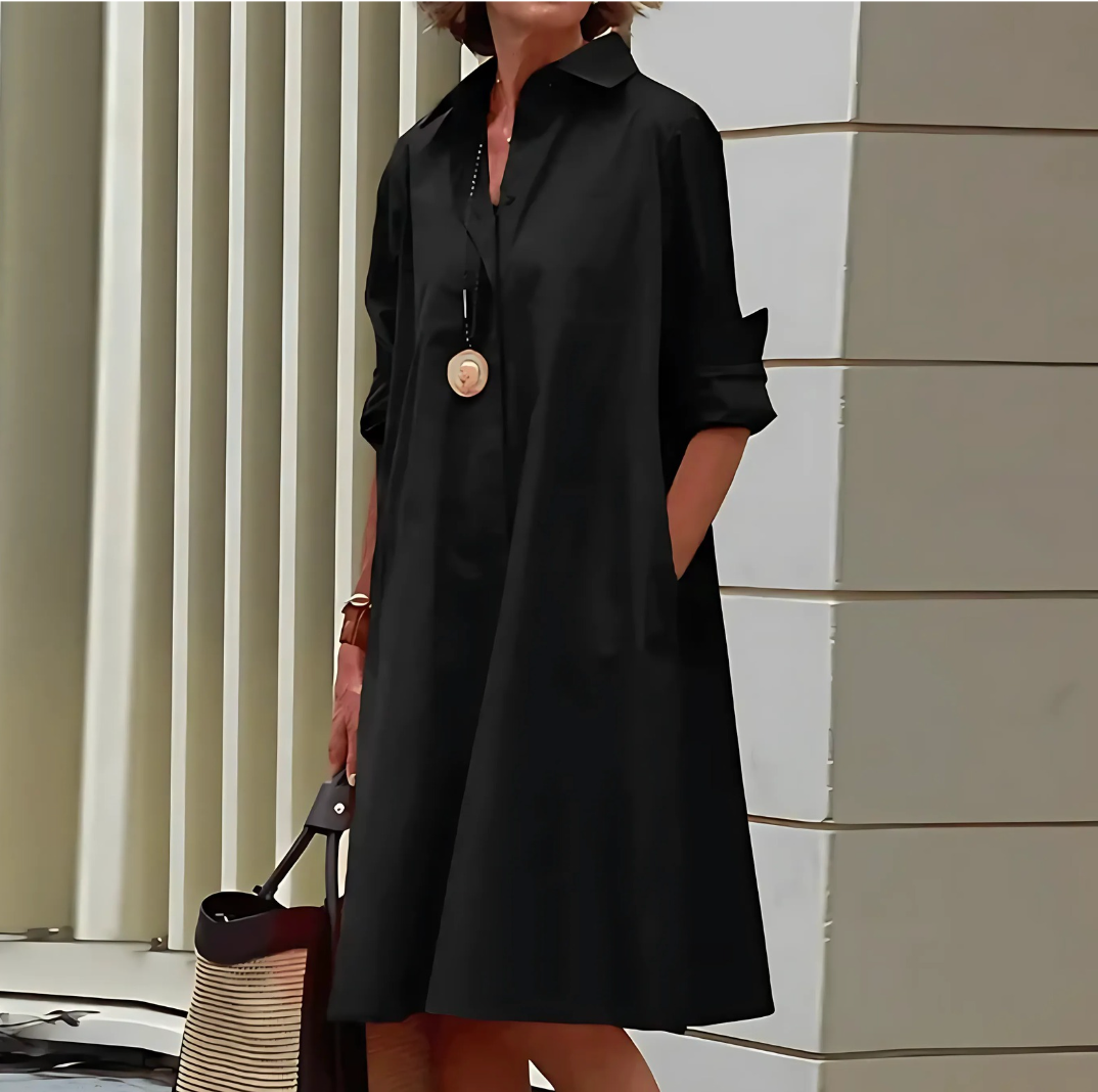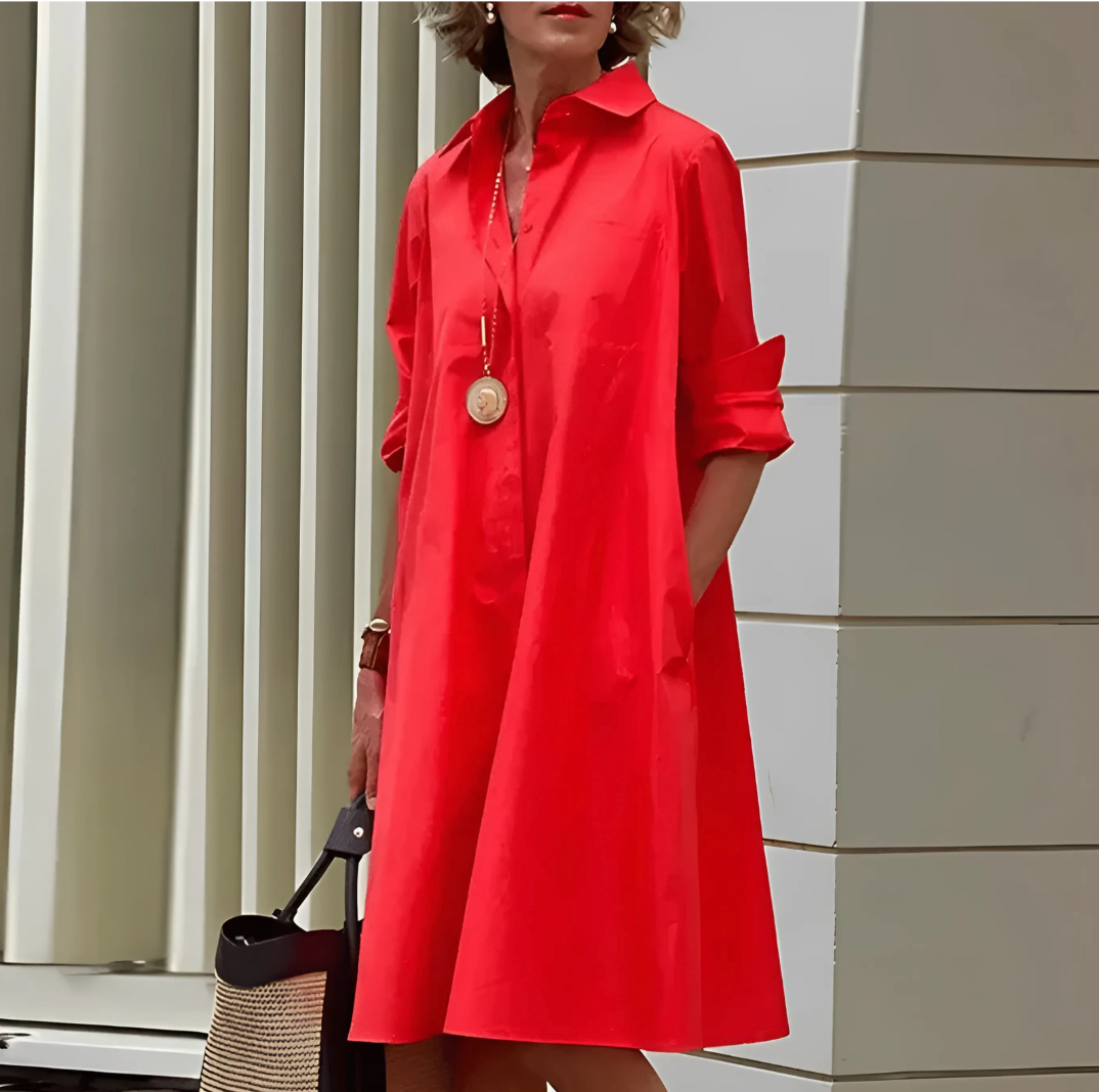 Upptäck Bettina™, klänningen som kombinerar sportig elegans med ett lätt, luftigt fall. Den klassiska polokragen ger en modern, chic twist, medan den följsamma A-linjen framhäver midjan och bjuder in till fri rörelse – perfekt för allt från stadsäventyr till lunch med vänner.