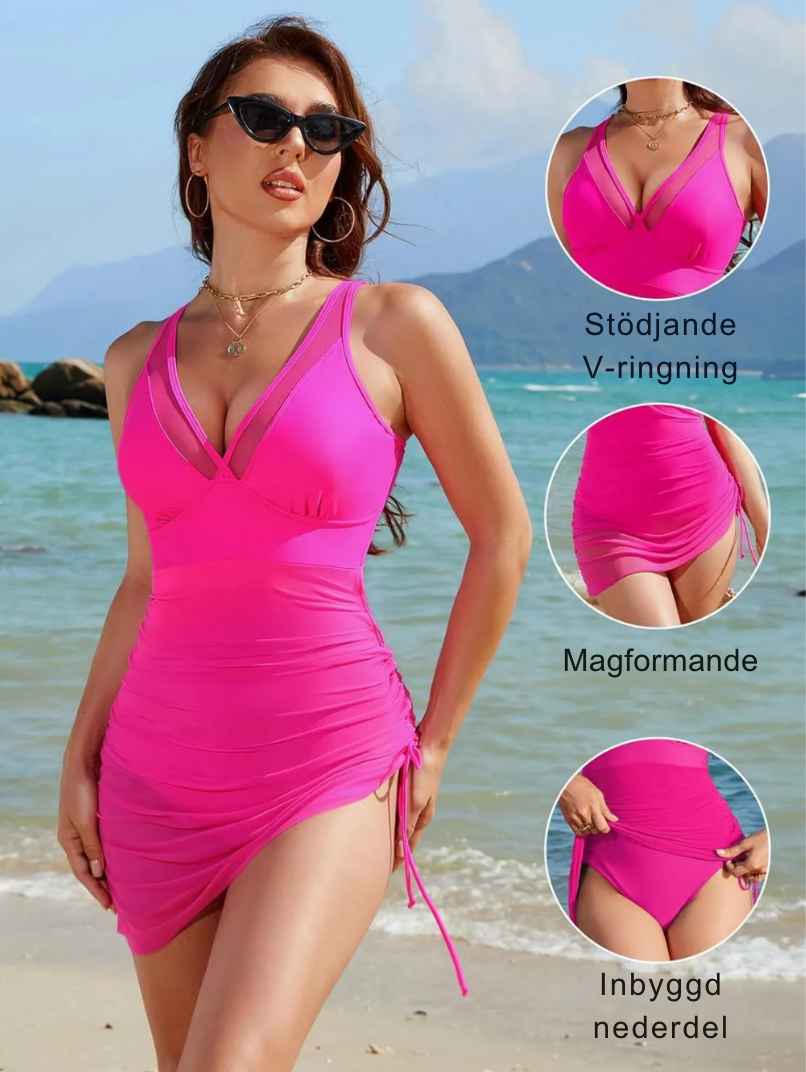 Dyk ner i stilen med vår baddräktklänning Marina™ med lekfullt skort-kjol!